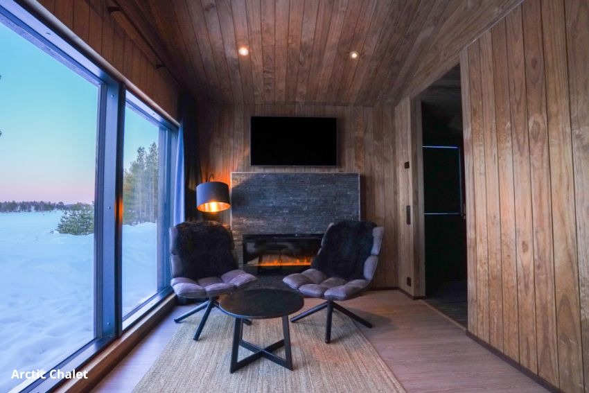– Keuze uit hotelkamer, Log Cabin of Arctic chalet